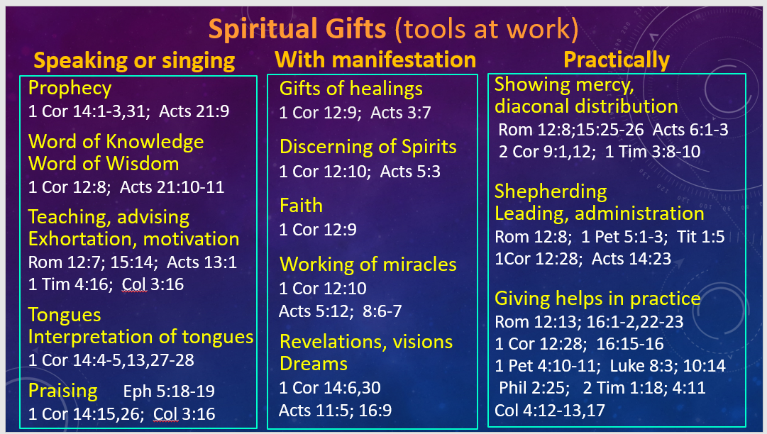 11. Ministries and gifts 1 Cor 12:4-7; 14:26; 1 Pet 4:10-11; Eph 4:11-12